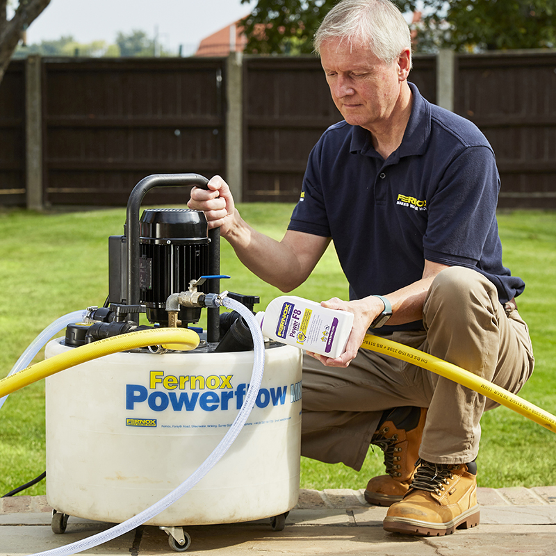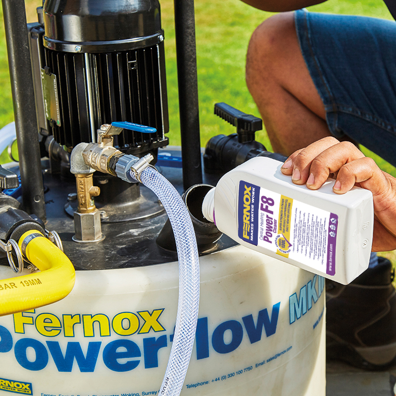 Bizonyos esetekben szükség lehet egy újabb adag Power Cleaner F8-ra, vagy a folyamat megismétlésére. Ürítse le és alaposan öblítse át, legalább kétszer, amíg tiszta víz nem folyik a rendszerből. Ha a Power Cleaner F8-at öblítőgéppel használja, alkalmazza a dinamikus öblítést hálózati vízzel, amíg tiszta víz nem folyik a rendszerből. Töltse fel a rendszert és a korrózió, illetve vízkőképződés elleni hosszú távú védekezéshez alkalmazzon Fernox Protector F1-et (vagy Fernox Protector+ Filter Fluid-ot beépített szűrővel rendelkező rendszerekben). Egyvezetékes, indirekt hengerekben, pl. „Primatic” vagy hasonló, ivóvízhez használható vegyszer használata javasolt.