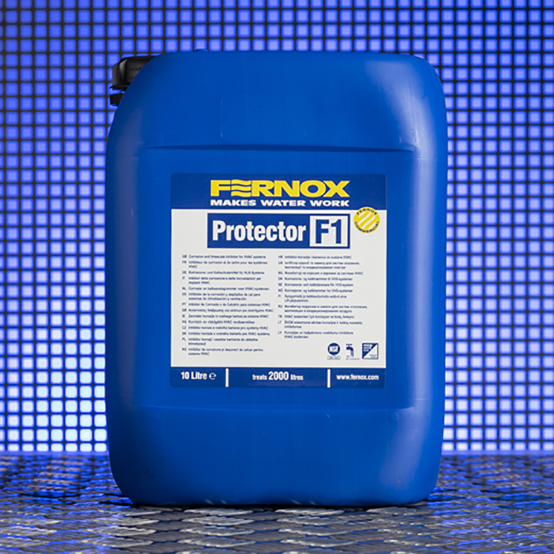 A Protector F1 véd a korrózió és a vízkőképződés ellen a kis teljesítményű és épületgépészeti fűtési és hűtési rendszerekben. Ez a termék kiváló pH kiegyenlítést is nyújt, amely biztosítja, hogy a rendszerben lévő víz a korrózió és vízkőképződés megakadályozásához optimális pH-tartományban maradjon. A Protector F1 kompatibilis a kereskedelmi fogalomban kapható összes Fernox termékkel és használható a fűtési és hűtési rendszerekben általánosan alkalmazott anyagokkal és fémekkel, beleértve az acélt és az alumíniumot. Egy 10 literes termék akár egy 2000 literes rendszer kezelésére is alkalmas, 0,5%-os adagolási arány mellett. A maximális védelem érdekében a termék koncentrációját rendszeresen ellenőrizni és szükség esetén növelni szükséges.